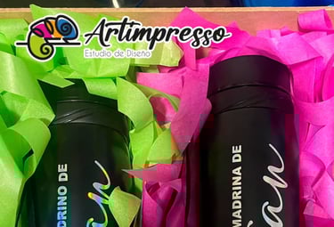 Nuestros termos personalizados son mucho más que un simple recipiente; son piezas de excelencia fabricadas con materiales de primera calidad y una atención meticulosa al detalle. Cada término es un lienzo en blanco listo para contar tu historia, ya sea el lema que inspira a tu equipo, el diseño que hace inolvidable una boda, o el logotipo que refuerza la identidad de tu marca.